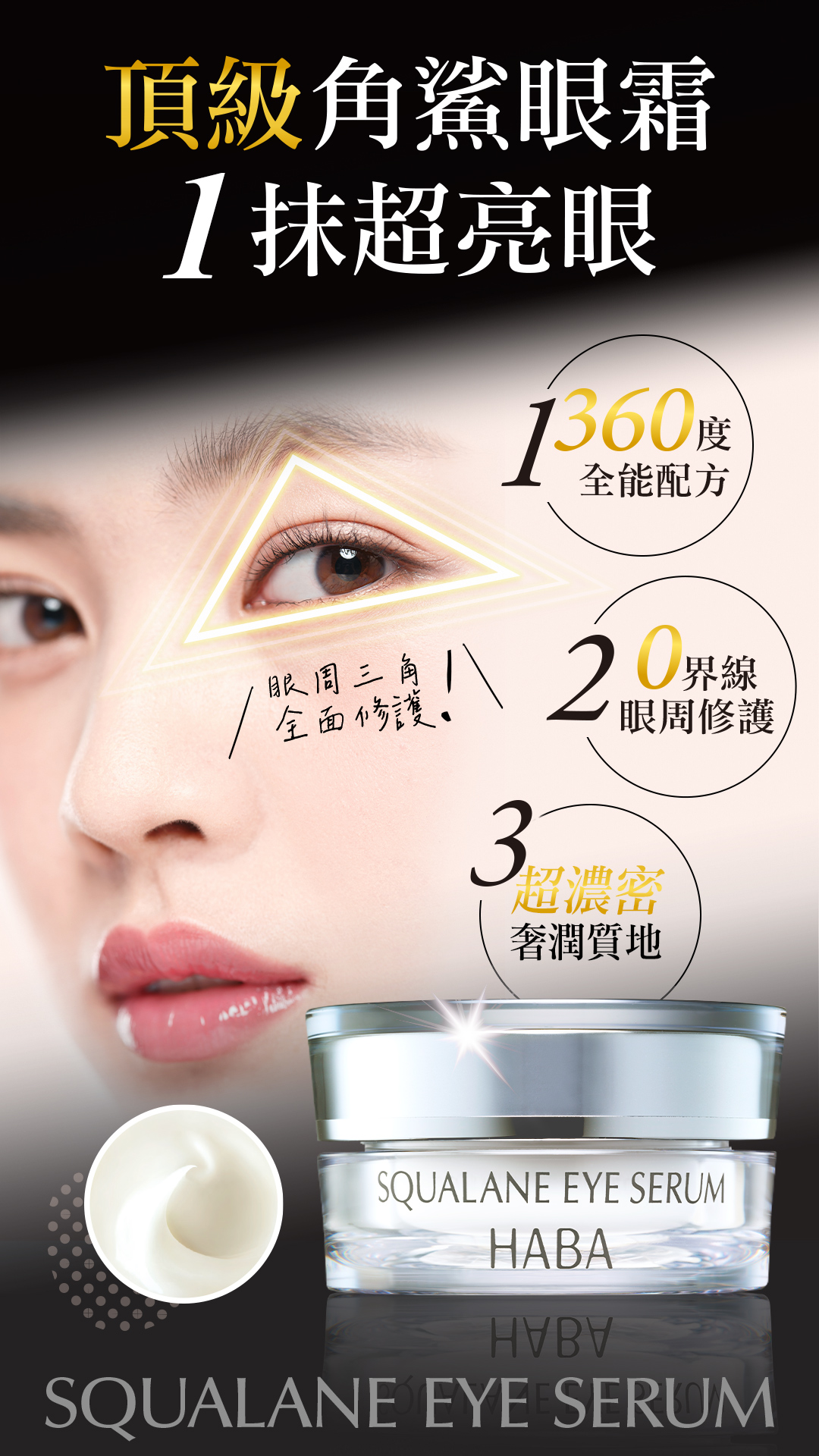 以獨家角鯊為核心,打造360度全能配方 × 0界限眼周修護,實現無齡亮眼奇蹟。濃密柔滑新質地,立即給予豐沛滋潤,同時深入修護,再現潤澤彈力。